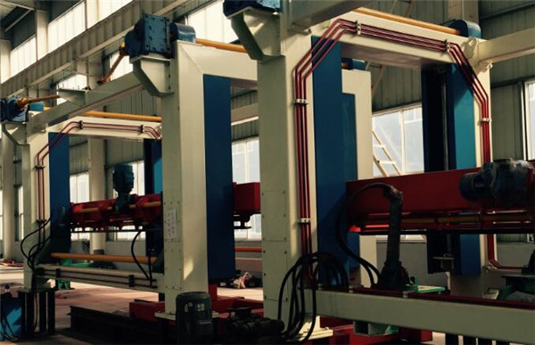 1.加氣混凝土切割機對坯體實行一步到位,六面翻轉切割,因其工藝先進,不用二次吊裝,減少了因多次吊裝對坯體的損傷。